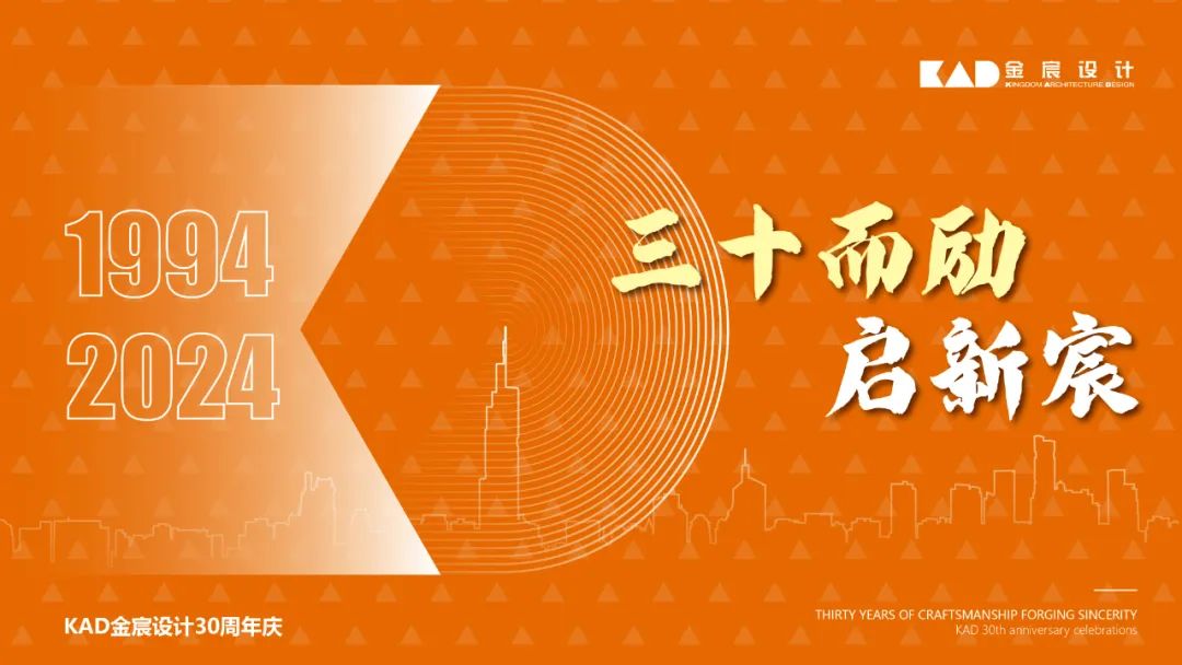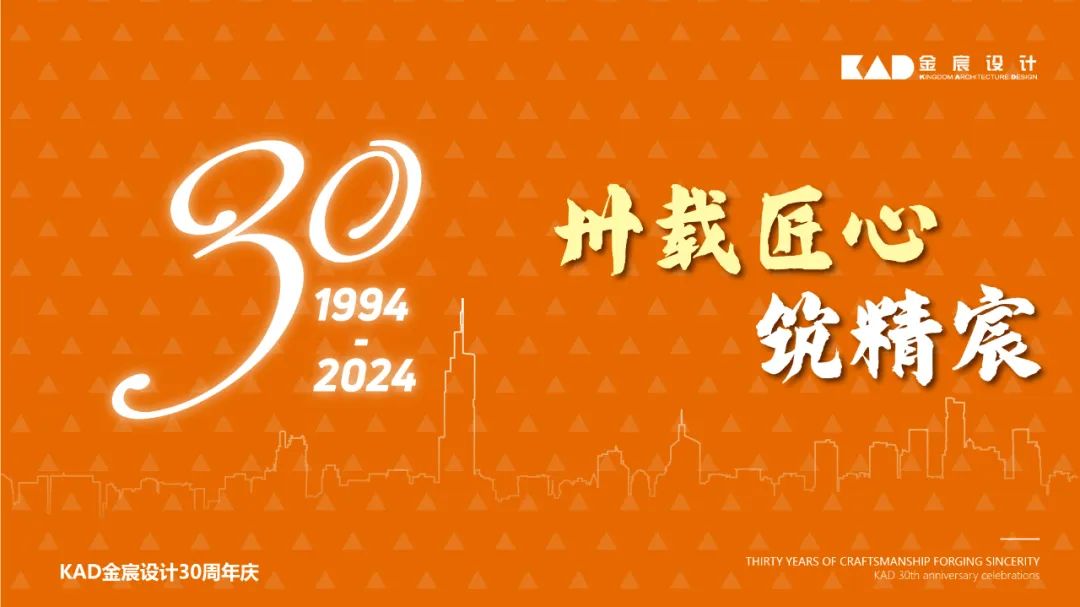 1994年,KAD金宸设计筑梦启航,秉持信念和匠心深耕建筑设计领域;30年间,KAD金宸设计在磨炼中发展,在逆境中突破,在市场大变革中以精诚和韧劲坚守文化传承、坚持创作创新,实现了队伍的壮大、组织的革新、品牌的提升;30年后的今天,KAD金宸设计已茁壮成长为具有品牌影响力的综合性建筑设计公司。